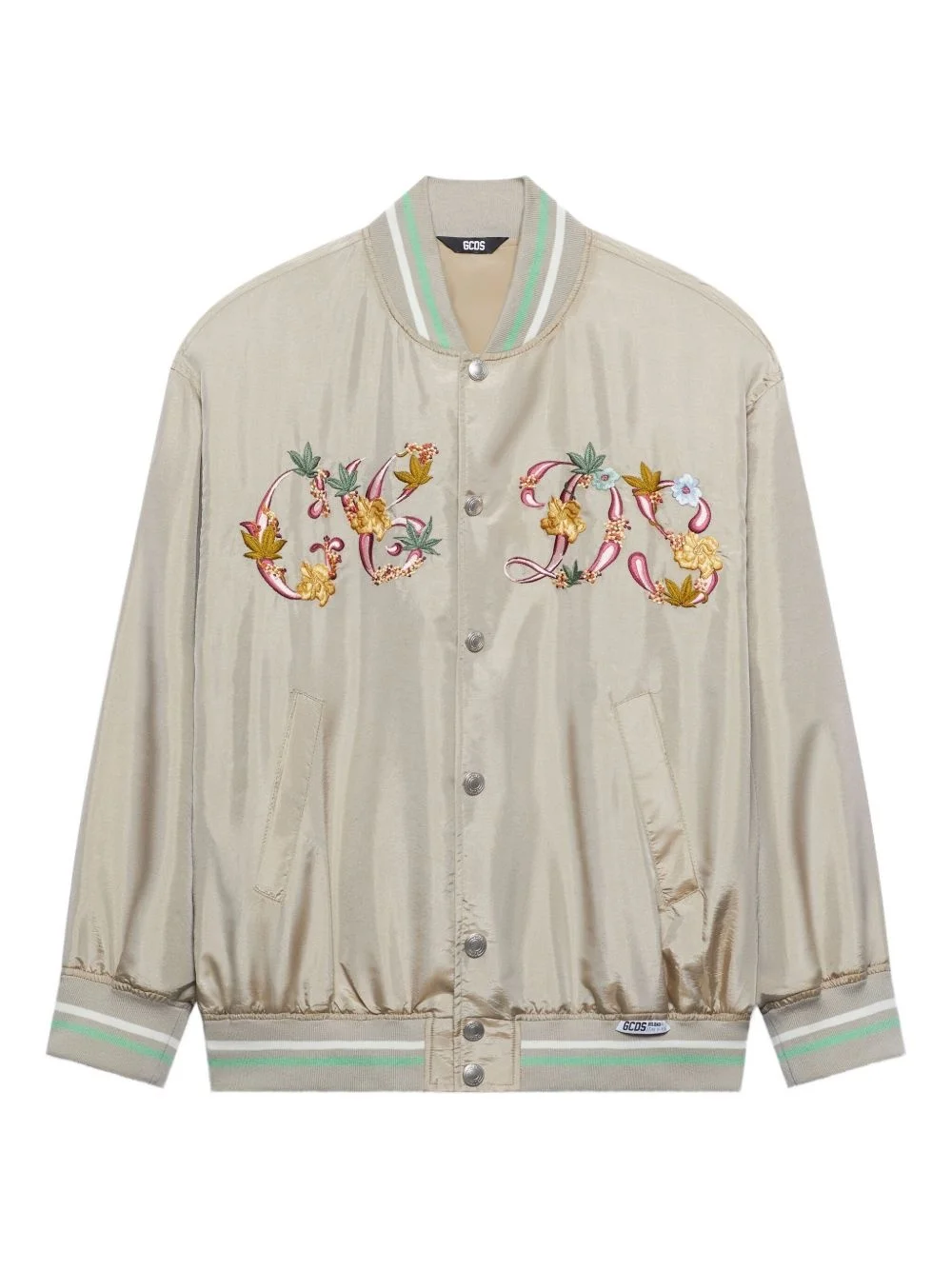 floral-embroidery bomber jacket Highlights - Grey - Front press-stud fastening - Floral embroidery - Two side welt pockets - Long sleeves Made in Italy Composition Polyamide 55%, Polyester 45%