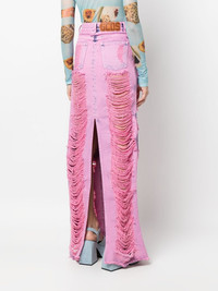 frayed-denim cargo maxi skirt Highlights - Pink - Cotton - Denim - Frayed detailing - Logo patch to the rear - High-waisted - Concealed fly and button fastening - Classic five pockets - Two side cargo pockets - Belt loops - Central rear vent - Floor-length Made in Italy Composition Lining: Polyester 65%, Cotton 35% Outer: Cotton 100% SIZE & FIT Model measurements Height 5 ft 10 in(1.78 m) Bust/Chest 33.07 in(84 cm) Hips 35.82 in(91 cm) Waist 26.96 in(68.5 cm) FittingInformation This maxi-length skirt is intended to be worn high on the waist Made from a midweight non-stretch fabric This piece fits true to size – take your usual size