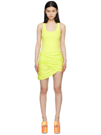 Cotton jersey dress. · Rib knit scoop neck and armscyes · Logo printed at front · Ruching at front · Tiered hem Supplier color: Lime 100% cotton. Made in Romania 231308F052000