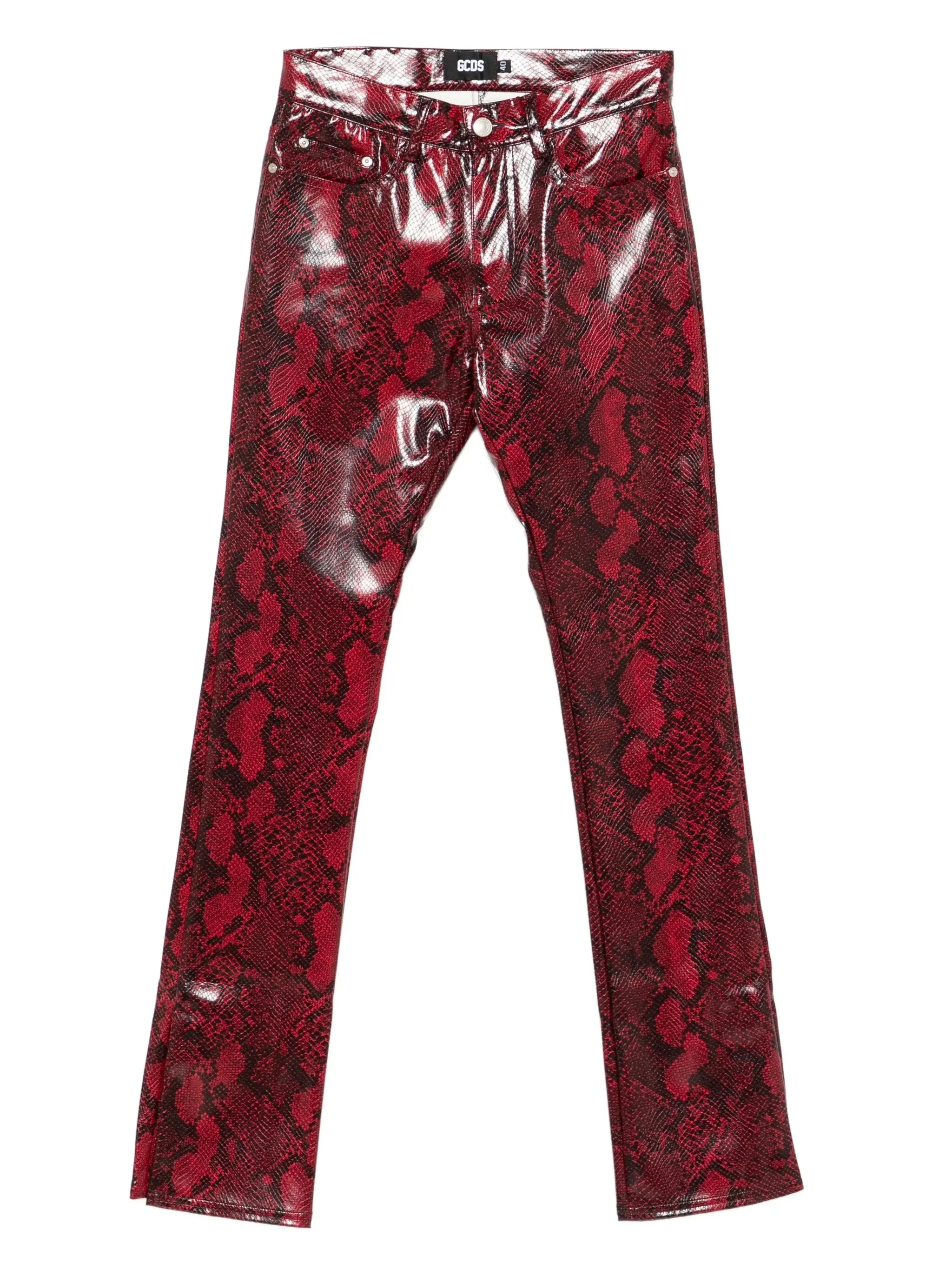red snakeskin print high shine finish five pockets belt loops button fastening - Color: RED - Made in: Bangladesh - Designer Style ID: B2CM2920TS9 RED Composition and care Artificial Leather: 100.0%