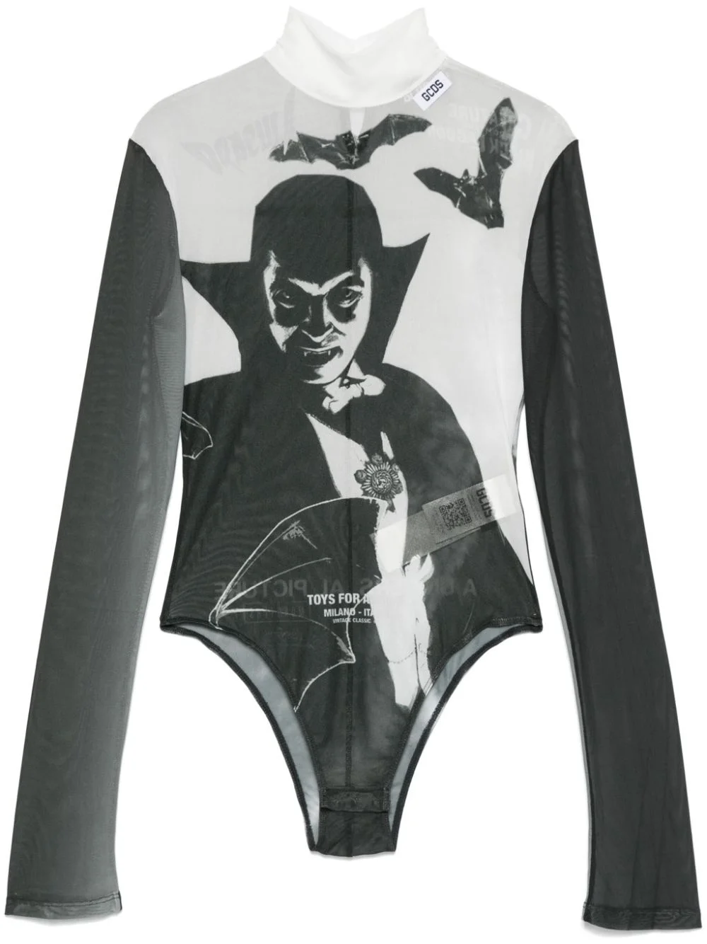 graphic-print bodysuit Highlights - Black/white - Mesh design - Semi-sheer construction - Graphic print to the front - Rear button fastening - Press-stud fastening - Mock neck - Logo patch to the front - Long sleeves - Just a reminder that this piece must be tried on over your own garments. Imported Composition Polyester 100%