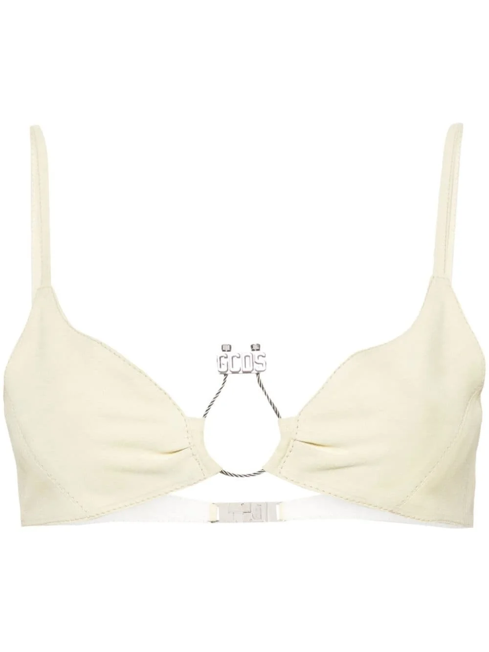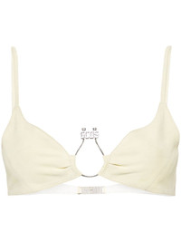 Hoop logo-plaque suede bralette Highlights - Pastel yellow - Leather - Suede - Panelled design - Silver-tone logo plaque to the front and rear - Silver-tone hardware - Sweetheart neck - Spaghetti straps - Sleeveless - Adjustable sliding fastening to the front - Rear clip fastening - Cotton lining Made in Italy Composition Outer: Leather 100% Lining: Cotton 100% SIZE & FIT Model measurements Height 5 ft 11 in(1.8 m) Bust/Chest 31.49 in(80 cm) Hips 36.61 in(93 cm) Waist 24.4 in(62 cm) FittingInformation Designed for a close fit throughout Suede leather has a soft and treated construction offering some flexibility This piece fits true to size – take your usual size