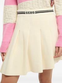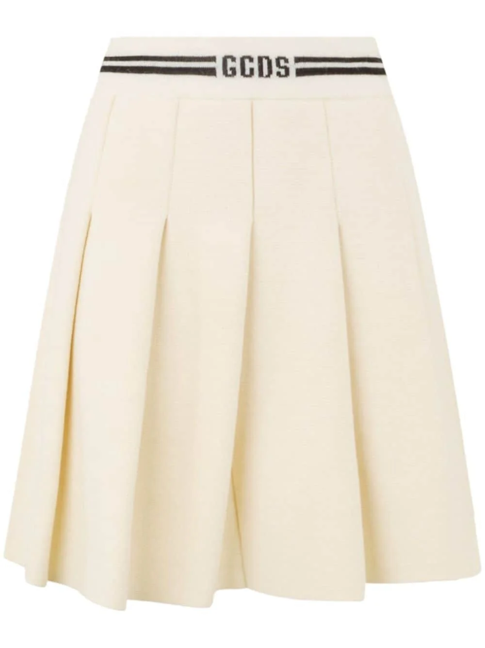 knitted pleated skirt Highlights - White - Wool blend - Elasticated logo waistband - Pleat detailing - Asymmetric design Imported Composition Wool 50%, Acrylic 50%