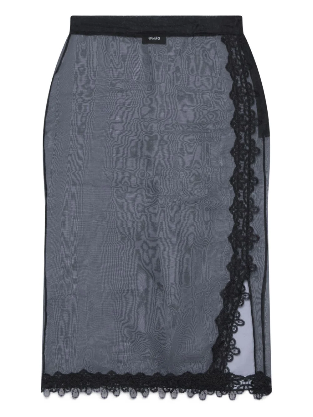 lace trim skirt Highlights - Black - Lace trim - Side slit - Sheer - Knee length Made in Italy Composition Polyethylene 100% Washing instructions Read Manufacturer Guidelines