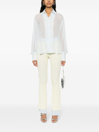 layered flared trousers Highlights - Light yellow, sky blue - Stretch-design - Tulle design - Layered design - High-waisted - Logo patch to the front - Flared design - Full-length - Lettuce hem - Elasticated waistband Imported Composition Nylon 80%, Spandex/Elastane 20% SIZE & FIT Model measurements Height 5 ft 9 in(1.76 m) Bust/Chest 31.88 in(81 cm) Hips 35.43 in(90 cm) Waist 22.44 in(57 cm) FittingInformation Designed with a flared hem, these trousers allow for a close fit at the waist with a slim fit over the leg and widening towards the hem The elasticated waist allows for a comfortable fit Made from a lightweight stretch fabric, this piece offers elasticity and flexibility when worn This piece fits true to size – take your usual size Washing instructions Machine Wash