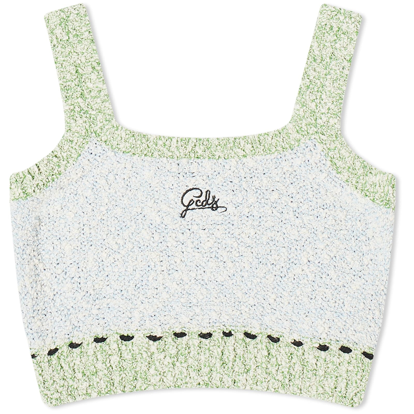 The avant-garde vision of Giuliano and Giordano Calza’s GCDS continues to grow with this Bouclé Knit Mini Top. Expertly crafted from a soft cotton blend, this two-tone bralette design is embellished using contrast stitching and its signature script logo for an unmistakably glamorous GCDS feel. - 52% Cotton, 35% Viscose, 13% Polyamide - Embroidered Branding - Made in Italy
