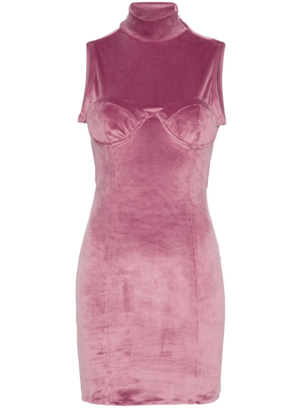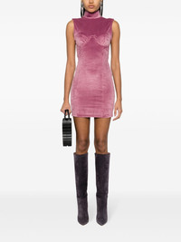 logo-embroidered open-back velvet minidress Highlights - Lavender purple - Stretch-design - Velvet - Embroidered logo to the side - Mock neck - Built-in cups bra - Concealed shoulder zip fastening - Rear clasp fastening - Sleeveless - Fitted waistline - Above-knee length - Straight hem - Unlined Made in Italy Composition Polyester 100% SIZE & FIT Model measurements Height 5 ft 11 in(1.8 m) Bust/Chest 30.7 in(78 cm) Hips 35.03 in(89 cm) Waist 24.4 in(62 cm) FittingInformation Designed for a close fit throughout The moulded cups offer shape and support Made from a midweight stretch fabric, this piece offers elasticity and flexibility when worn This piece fits true to size – take your usual size Washing instructions Hand Wash