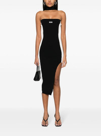 logo-embroidered ribbed dress Highlights - Black/white - Ribbed knit - Side stripe detailing - Embroidered logo to the front - Mock neck - Strapless - Sleeveless - Side slit - Mid-calf length - Straight hem - Unlined Imported Composition Viscose 83%, Polyester 17% SIZE & FIT Model measurements Height 5 ft 11 in(1.8 m) Bust/Chest 30.7 in(78 cm) Hips 35.03 in(89 cm) Waist 24.4 in(62 cm) FittingInformation Designed for a close fit throughout Made with a midweight knit, this piece offers some stretch This piece fits true to size – take your usual size