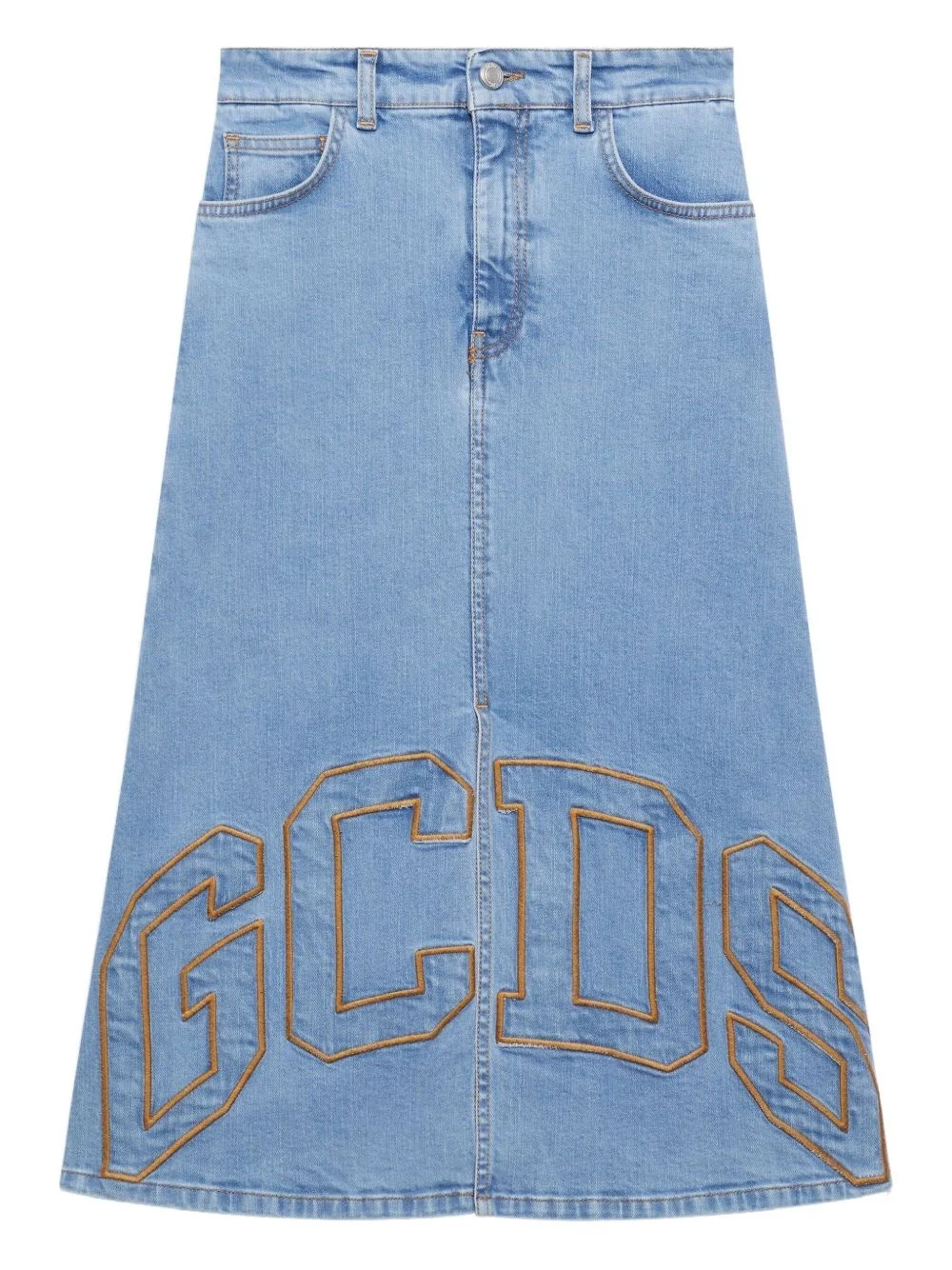 logo-embroidered skirt Highlights - Light blue - Concealed fly and button fastening - Classic five pockets - Belt loops - High-waisted Made in Italy Composition Cotton 98%, Elastane 2%
