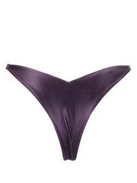 logo-hardware bikini bottoms violet purple stretch-design metallic effect triangle shape thong style logo-engraved gold-tone hardware Be mindful to try on swimwear over your own garments. Made in Italy Composition Outer: Polyamide 79%, Elastane 21% Lining: Polyamide 79%, Elastane 21% Washing instructions Hand Wash