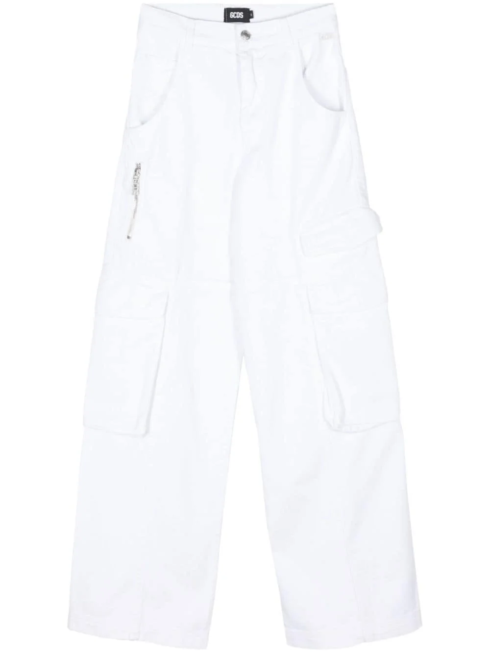 Ultracargo trousers Highlights - White - Cotton - Denim - Belt loops - Classic five pockets - Logo lettering - Two side flap pockets - Two side cargo pockets - Straight leg - Front button and zip fastening Made in Italy Composition Cotton 100% SIZE & FIT FittingInformation This piece is unisex and is designed with a wide-leg, whether you usually select women's or men's sizes Sturdy and hard-wearing, this denim piece offers no stretch