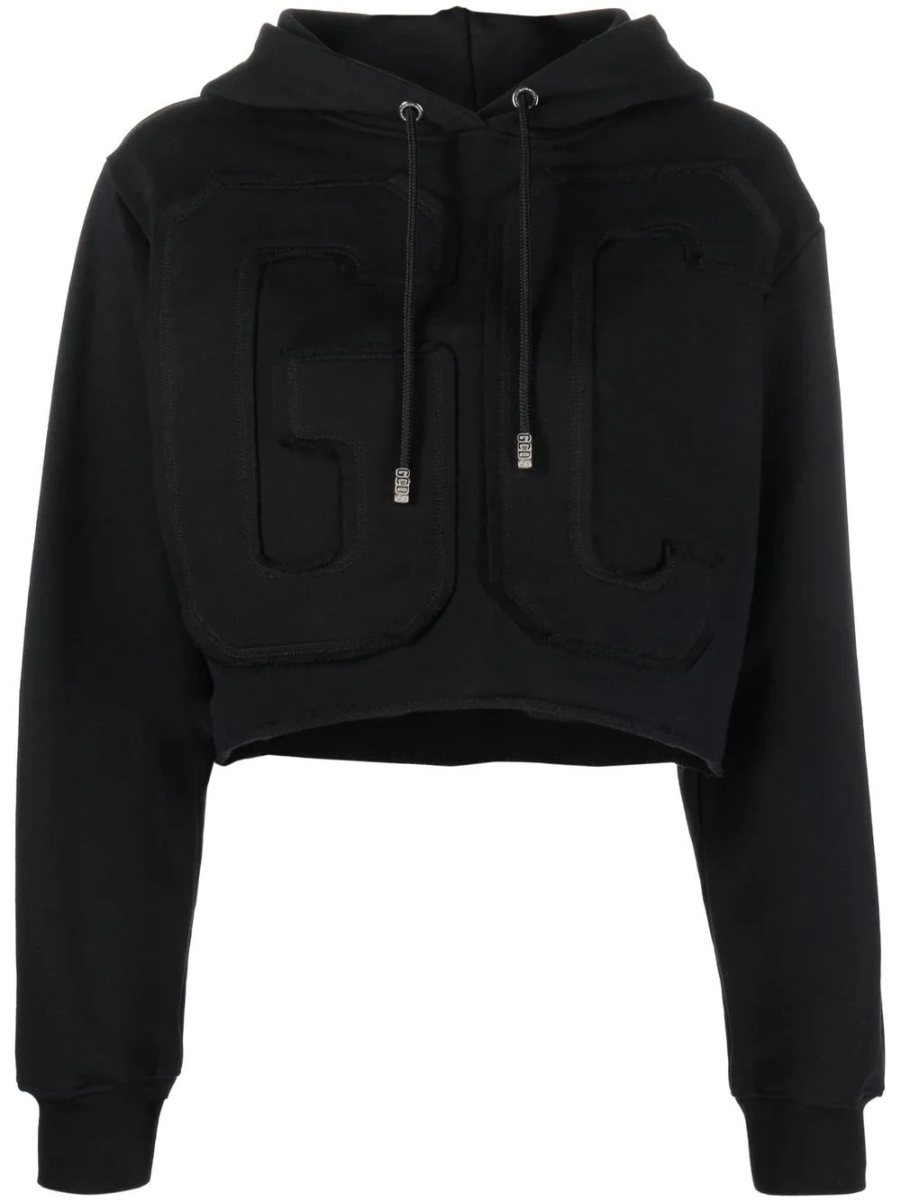 logo-patch cropped hoodie black cotton logo patch to the front drawstring hood long sleeves ribbed cuffs raw-cut hem Imported Composition Cotton 100% SIZE & FIT Model measurements Height 5 ft 10 in(1.78 m) Bust/Chest 31.49 in(80 cm) Hips 35.43 in(90 cm) Waist 24.4 in(62 cm) FittingInformation This piece fits true to size. We recommend you get your regular size Cut for a loose fit Made with a mid-weight fabric Washing instructions Machine Wash