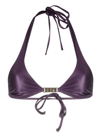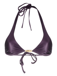 logo-plaque halterneck bikini top violet purple stretch-design metallic effect gold-tone logo plaque halterneck tie fastening rear tie fastening triangle cup Made in Italy Composition Outer: Polyamide 79%, Elastane 21% Lining: Polyamide 79%, Elastane 21% Washing instructions Hand Wash