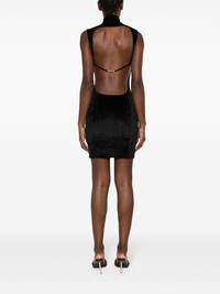 logo-plaque high-neck minidress Highlights - Black - Faux suede - Stretch-design - Gold-tone logo plaque - Cut-out detailing - High neck - Sleeveless - Straight hem - Thigh-length Made in Italy Composition Polyester 92%, Spandex/Elastane 8% SIZE & FIT Model measurements Height 5 ft 10 in(1.77 m) Bust/Chest 29.92 in(76 cm) Hips 34.25 in(87 cm) Waist 23.62 in(60 cm) FittingInformation Designed for a very close and sculpting fit The moulded cups offer shape and support Made from a midweight stretch fabric, this piece offers elasticity and flexibility when worn This piece fits true to size – take your usual size