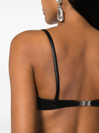 logo-plaque leather bralette Highlights - Black - Leather - Smooth grain - Silver-tone logo plaque to the front and rear - Sweetheart neck - Spaghetti straps - Rear clasp fastening - Slide-lock fastening to the front - Full lining Made in Italy Composition Lining: Acetate 95%, Spandex/Elastane 5% Outer: Leather 100% SIZE & FIT Model measurements Height 5 ft 11 in(1.8 m) Bust/Chest 30.7 in(78 cm) Hips 35.03 in(89 cm) Waist 24.4 in(62 cm) FittingInformation Designed for a close fit throughout Soft leather has a supple and smooth construction offering some flexibility This piece fits true to size – those with a fuller chest may wish to take one size up Washing instructions Specialist Cleaning