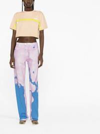 logo-print cotton T-shirt Highlights - Light brown/yellow/white - Cotton - Logo print at the chest - Horizontal stripe print - Round neck - Short sleeves - Straight hem - Cropped Made in Italy Composition Cotton 100% SIZE & FIT Model measurements Height 5 ft 10 in(1.79 m) Bust/Chest 31.1 in(79 cm) Hips 35.03 in(89 cm) Waist 24.01 in(61 cm) FittingInformation Designed for a relaxed fit, this piece allows for comfort and movement when worn Made from a lightweight non-stretch fabric, this piece offers minimal elasticity when worn This piece fits true to size – take your usual size Washing instructions Machine Wash