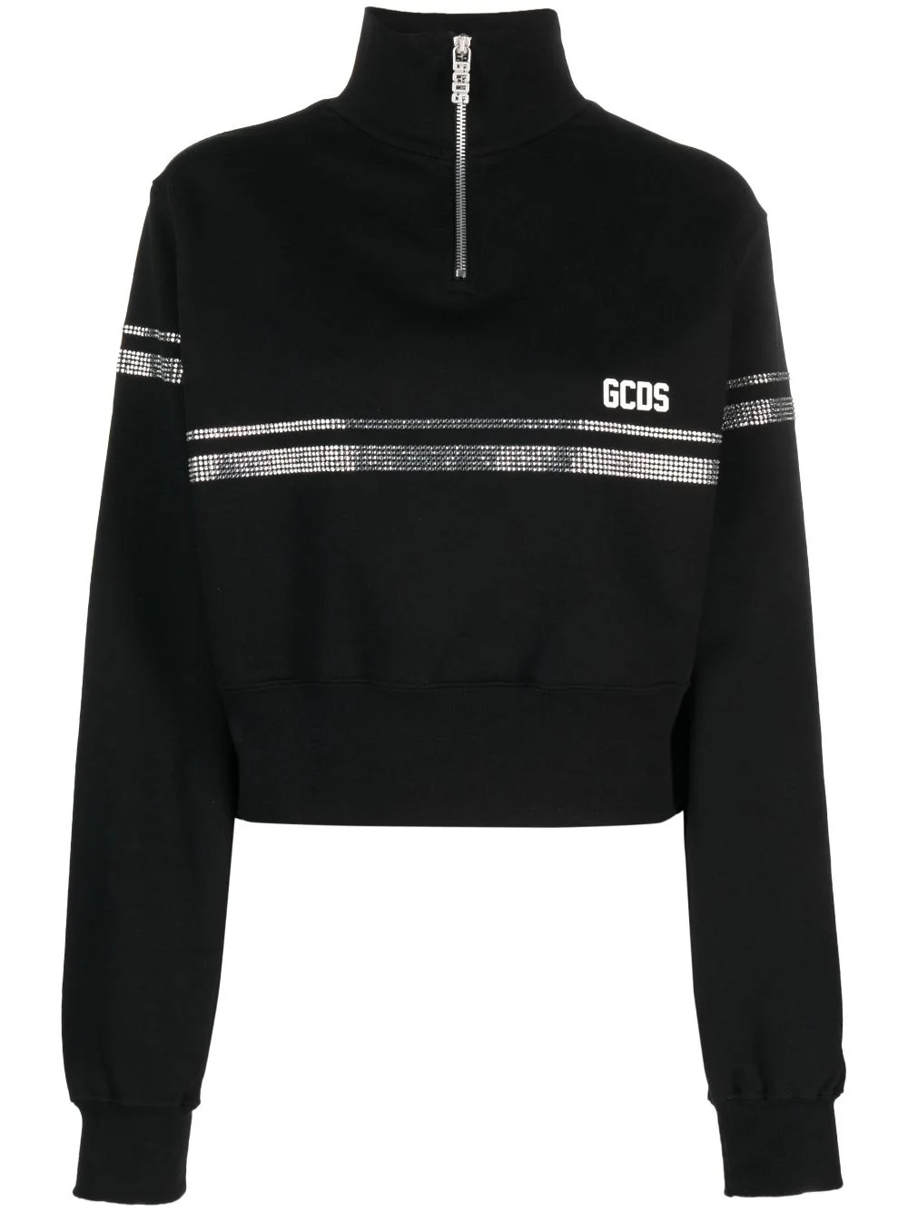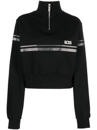 logo-print crystal-embellished sweatshirt Highlights - Black - Cotton - Logo print to the front - Crystal embellishment - Funnel neck - Half front zip fastening - Long sleeves - Straight hem Made in Italy Composition Cotton 100% SIZE & FIT Model measurements Height 5 ft 10 in(1.78 m) Bust/Chest 31.49 in(80 cm) Hips 37 in(94 cm) Waist 23.62 in(60 cm) FittingInformation Designed for a relaxed fit, this piece allows for comfort and movement when worn Made from a midweight non-stretch fabric, this piece offers minimal elasticity when worn This piece fits true to size – take your usual size Washing instructions Machine Wash
