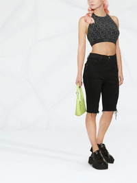 logo-print lurex cropped top