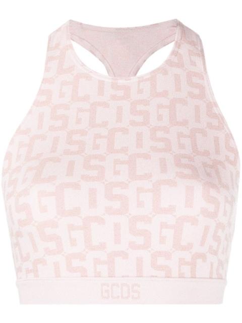 logo-print lurex cropped top GCDS puts a glamorous spin on athleisure, by crafting this cropped top in a shimmering lurex. The label's logo print, a signature, makes for a branded finish. Imported Composition Polyamide 92%, Polyester 4%, Spandex/Elastane 4% SIZE & FIT Model measurements Height 5 ft 10 in(1.78 m) Bust/Chest 32.28 in(82 cm) Hips 35.03 in(89 cm) Waist 23.22 in(59 cm) FittingInformation This piece fits true to size. We recommend you get your regular size Cut for a close fit Made with a mid-weight stretch fabric Washing instructions Machine Wash