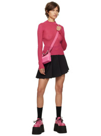 Rib knit virgin wool and acrylic-blend sweater. · Turtleneck · Logo bonded at front · Subtle distressing at cuffs and hem Supplier color: Fucsia 50% virgin wool, 50% acrylic.