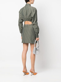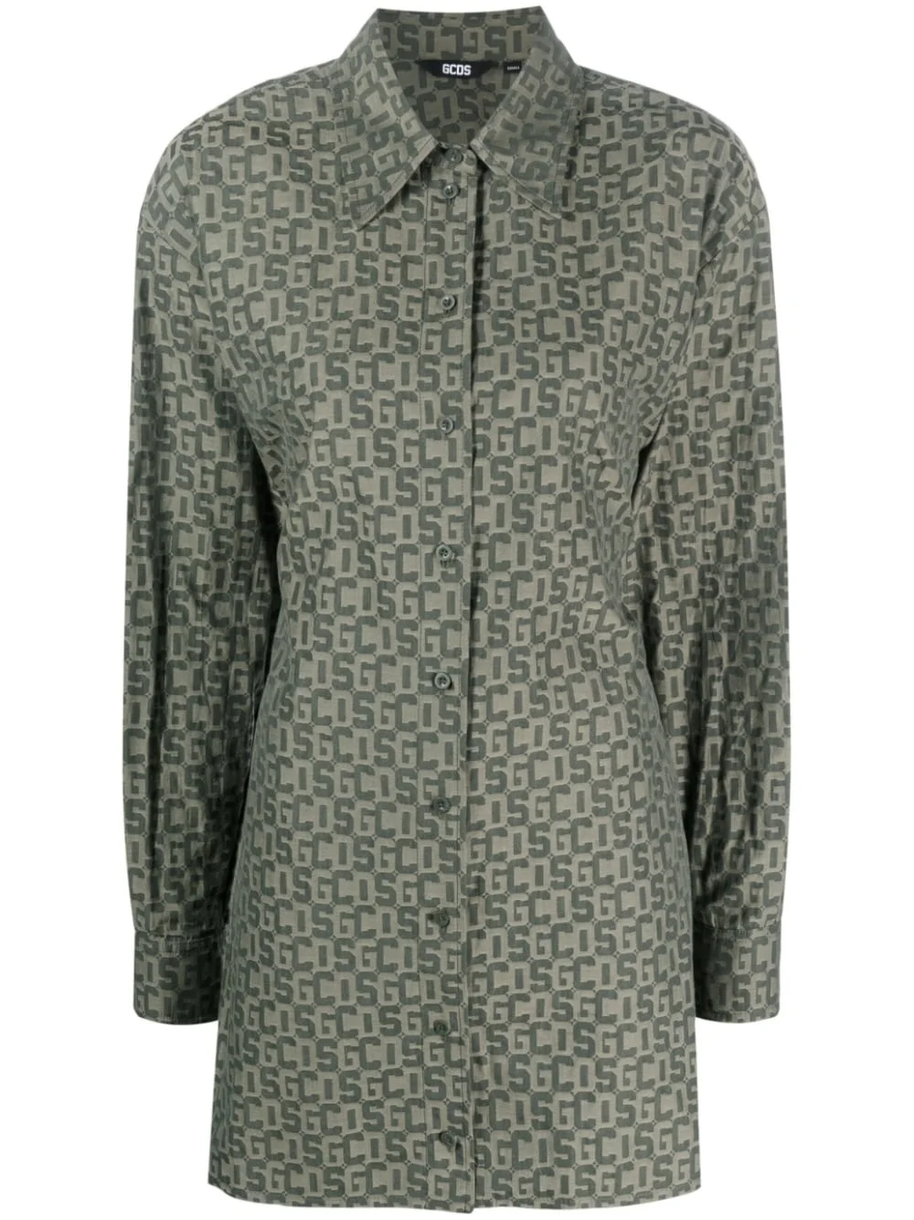 logo-print shirt dress khaki cotton all-over logo print classic collar silver-tone logo plaque front button fastening cut-out detailing rear elasticated waistband buttoned-cuff sleeves straight hem thigh-length Made in Italy Composition Cotton 100% SIZE & FIT Model measurements Height 5 ft 11 in(1.8 m) Bust/Chest 31.49 in(80 cm) Hips 35.43 in(90 cm) Waist 24.4 in(62 cm) FittingInformation Designed for a slim fit that sits just away from the body offering a close yet comfortable fit Made from a midweight non-stretch fabric This piece fits true to size – take your usual size Washing instructions Hand Wash