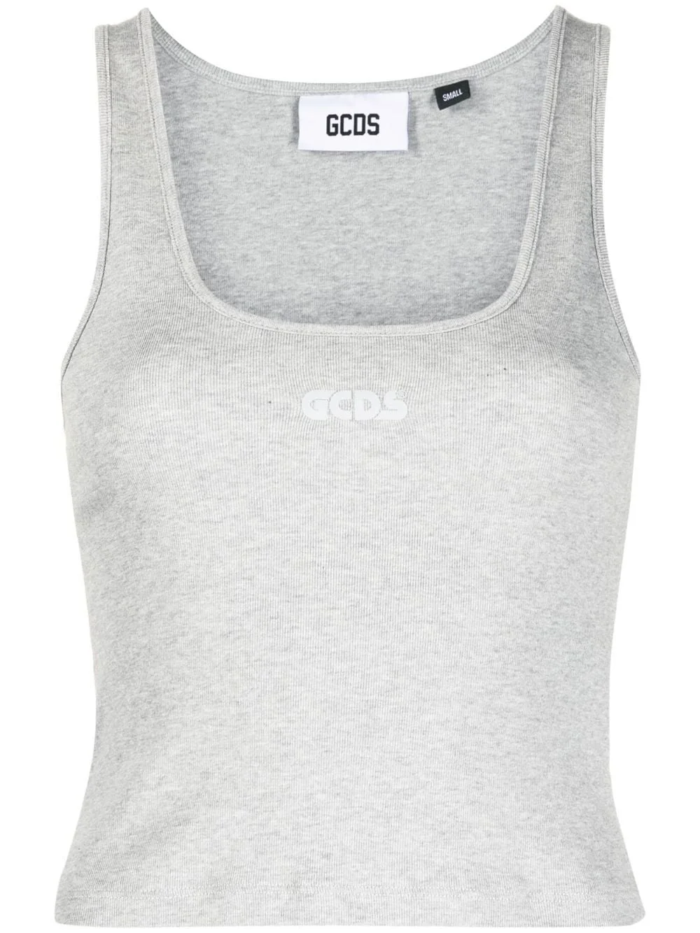 logo-print tank top grey cotton logo print at the chest U-neck sleeveless straight hem Imported Composition Cotton 100% SIZE & FIT Model measurements Height 5 ft 10 in(1.79 m) Bust/Chest 33.07 in(84 cm) Hips 35.82 in(91 cm) Waist 24.01 in(61 cm) FittingInformation This piece fits true to size. We recommend you get your regular size Cut for a close fit Made with a mid-weight fabric Washing instructions Machine Wash
