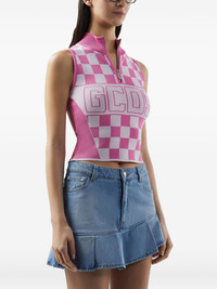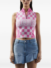 logo-print top Highlights - Bubblegum pink - Short front zip fastening - Check pattern - Sleeveless - Straight hem Made in Italy Composition Viscose 65%, Polyamide 35%