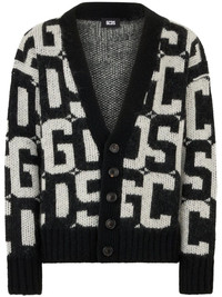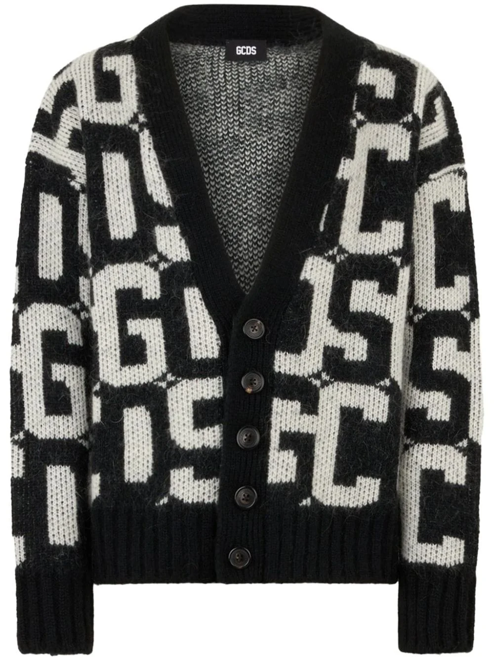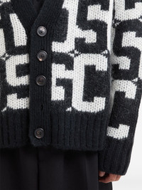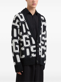 monogram-print cardigan Highlights - Black/white - Knitted construction - Front button fastening - Monogram pattern - Intarsia-knit logo - Ribbed v-neck - Long sleeves - Ribbed cuffs and hem - Straight hem - When buying this unisex item, keep in mind that it is graded in standard men's sizing. Made in Italy Composition Acrylic 36%, Nylon 30%, Mohair 30%, Wool 4%