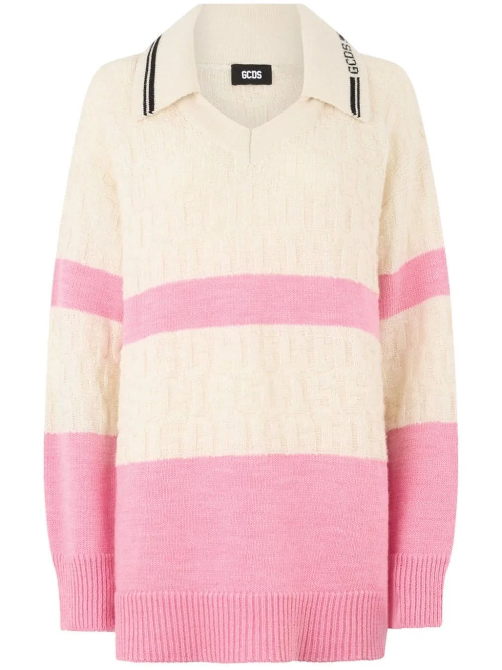 monogram sweater Highlights - Pink - Wool blend - V-neck - Long sleeves - Ribbed cuffs and hem - Internal logo patch Made in Italy Composition Wool 50%, Acrylic 50%