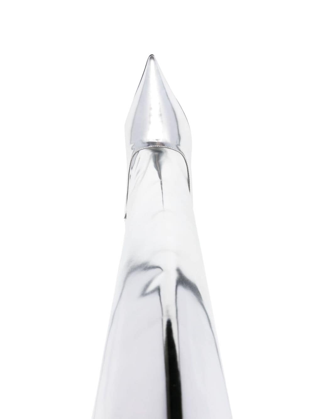 Morso Mirror 110mm leather boots Highlights - Silver-tone - Calf leather - Patent finish - Metallic effect - 3d detailing - Pointed toe - Knee-high - Side zip fastening - 110mm high sculpted heel - Leather sole Composition Lining: Calf Leather 100% Outer: Patent Calf Leather 100% Sole: Calf Leather 100% SIZE & FIT Measurement CIRCUMFERENCE 18.1 in(46 cm) HEEL 4.3 in(11 cm) HEIGHT 14.8 in(37.5 cm)