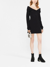 off-shoulder mini dress black cotton logo print to the front off-shoulder long sleeves straight hem thigh-length Imported Composition Cotton 100% SIZE & FIT Model measurements Height 5 ft 10 in(1.78 m) Bust/Chest 31.49 in(80 cm) Hips 35.43 in(90 cm) Waist 24.4 in(62 cm) FittingInformation This piece fits true to size. We recommend you get your regular size Cut for a slim fit Made with a mid-weight fabric Washing instructions Machine Wash