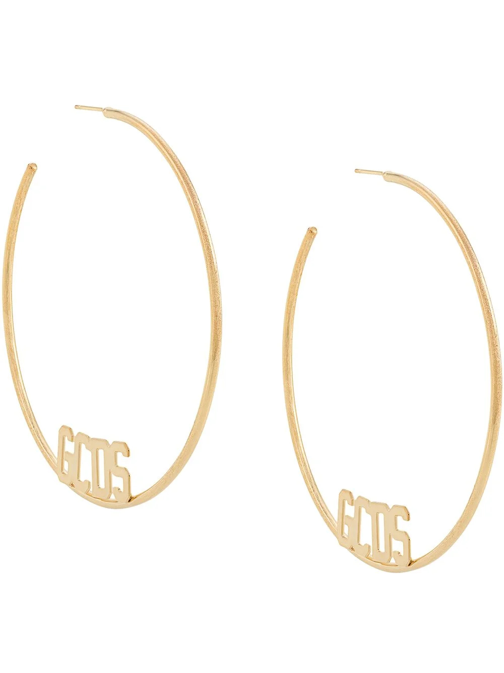 oversized single hoop earring Gold-tone metal oversized single hoop earring from GCDS featuring a post back closure, slim oversized hoops and a base logo detail. This is a single earring. Made in Italy SIZE & FIT Model measurements Height 5 ft 11 in(1.8 m) Bust/Chest 31.1 in(79 cm) Hips 34.25 in(87 cm) Waist 22.83 in(58 cm) Measurement CIRCUMFERENCE 7.24 in(18.4 cm) Weight (single earring) 7 g(7 g) WIDTH 0.07 in(0.2 cm)
