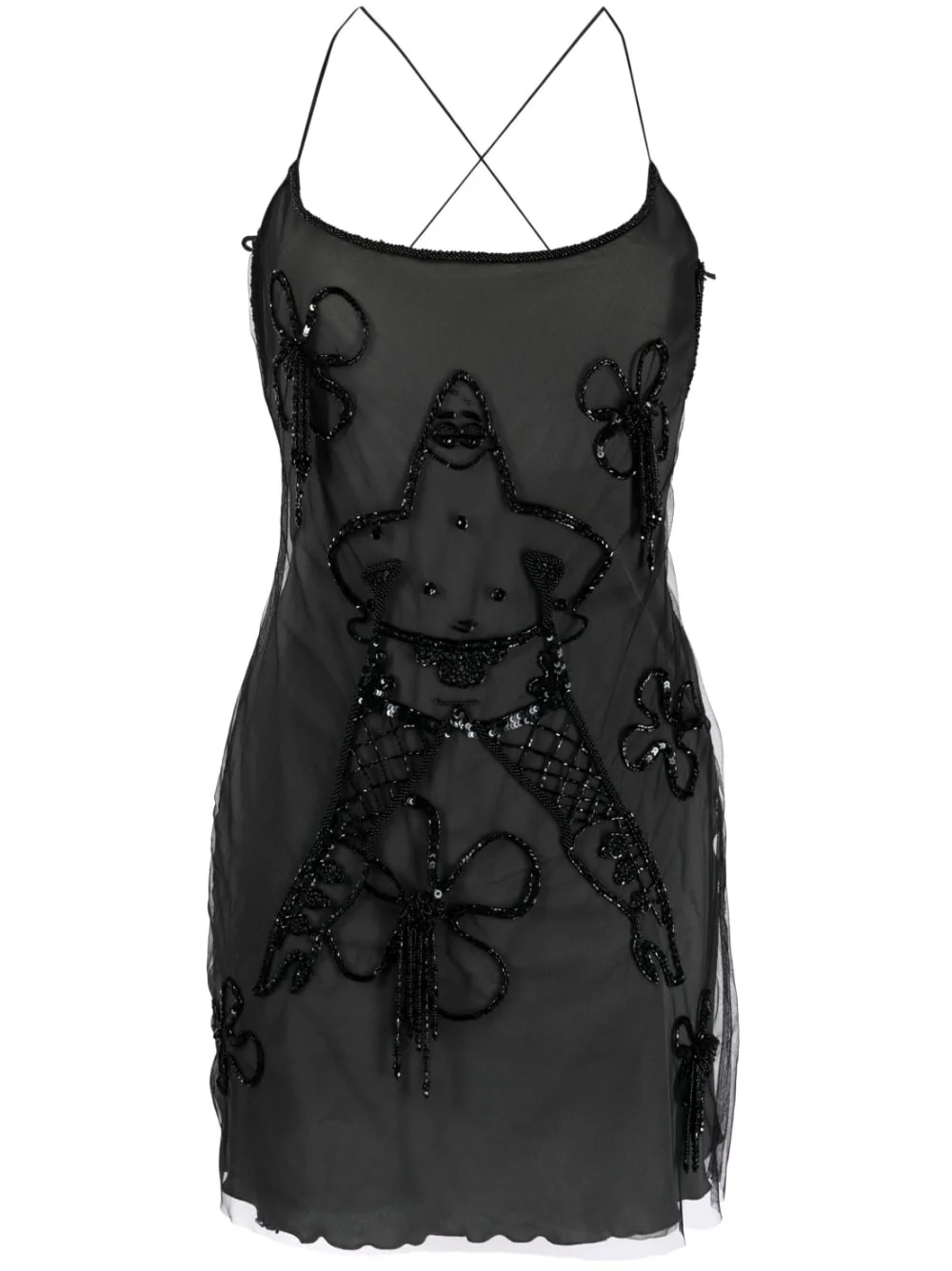 Patrick-embellished tulle mini dress Highlights - Black - Tulle overlay - Embroidered motif - Bead embellishment - Spaghetti straps - Open back - Thigh-length Made In Italy Composition Polyamide 100% SIZE & FIT Model measurements Height 5 ft 10 in(1.77 m) Bust/Chest 31.49 in(80 cm) Hips 36.22 in(92 cm) Waist 22.44 in(57 cm) FittingInformation Designed for a slim fit that sits just away from the body offering a close yet comfortable fit Made from a midweight non-stretch fabric, this piece offers minimal elasticity when worn This piece fits true to size – take your usual size Washing instructions Dry Clean Only