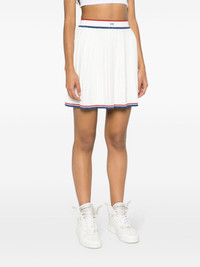 pleated knit skirt Highlights - White - Knitted construction - High-waisted - Two-tone ribbed trim - Logo patch to the front - Fully pleated - Contrasting two-tone trim - Thigh-length - Elasticated waistband Imported Composition Viscose 72%, Polyester 28% SIZE & FIT Model measurements Height 5 ft 9 in(1.76 m) Bust/Chest 31.88 in(81 cm) Hips 35.43 in(90 cm) Waist 22.44 in(57 cm) FittingInformation This mini-length skirt is intended to be worn high on the waist The elasticated waist allows for a comfortable fit Made with a midweight knit, this piece offers some stretch This piece fits true to size – take your usual size Washing instructions Machine Wash