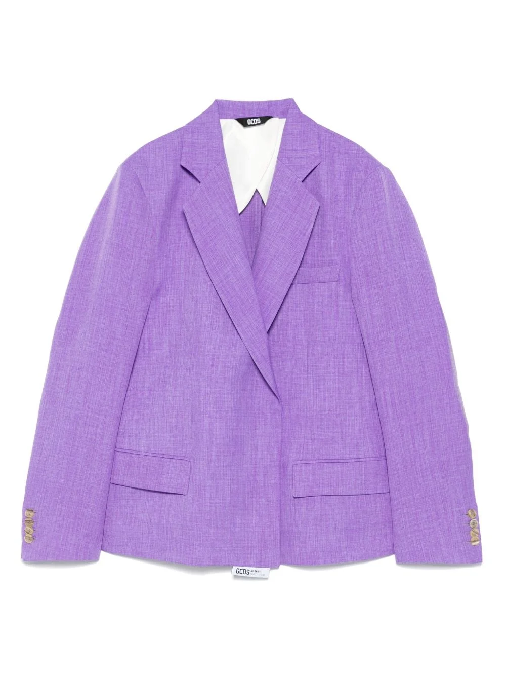 melange-effect blazer Highlights - Violet purple - Double-breasted button fastening - Shoulder pads - Buttoned cuffs - Chest welt pocket Made in Italy Composition Lining: Polyester 100% Outer: Polyester 100% SIZE & FIT Model measurements Height 5 ft 9 in(1.75 m) Bust/Chest 31.88 in(81 cm) Hips 34.64 in(88 cm) Waist 24.01 in(61 cm) FittingInformation Designed for a relaxed fit, this piece allows for comfort and movement when worn The internal shoulder pads offer a structured shape Made from a midweight non-stretch fabric