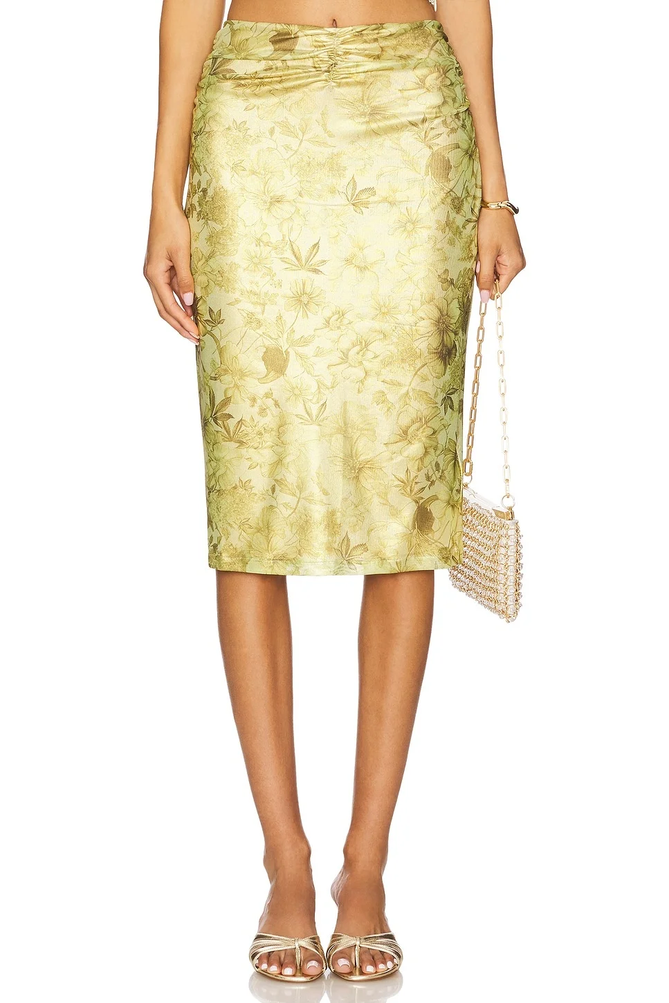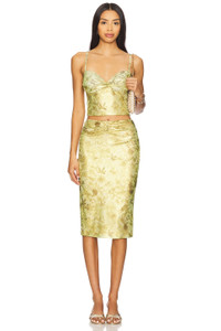 - Self: 100% polyester Lining: 92% polyamide 8% elastane - Machine wash cold - Fully lined - Hidden back zipper closure - Midweight metallic mesh fabric with ruching - Item not sold as set - Skirt measures approx 27" in length - Revolve Style No. GCDR-WQ3 - Manufacturer Style No. B1CW3209TN2