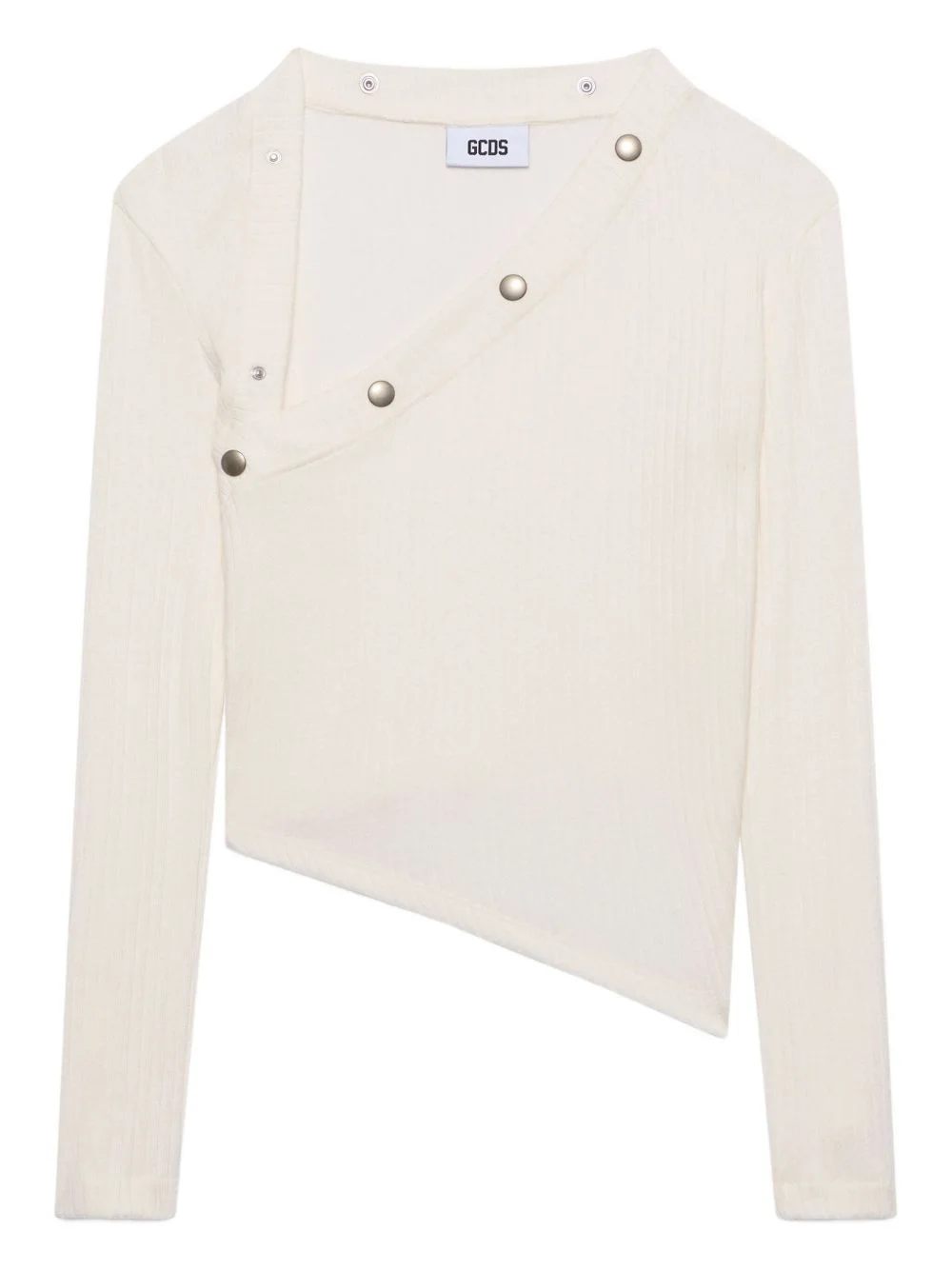 button asymmetric blouse Highlights - Bright white - Ribbed knit - Asymmetric construction - Buttoned shoulder - Buttoned cuffs - Long sleeves Made in Italy Composition Viscose 49%, Polyester 25%, Polyamide 21%, Spandex/Elastane 5% Washing instructions Read Manufacturer Guidelines