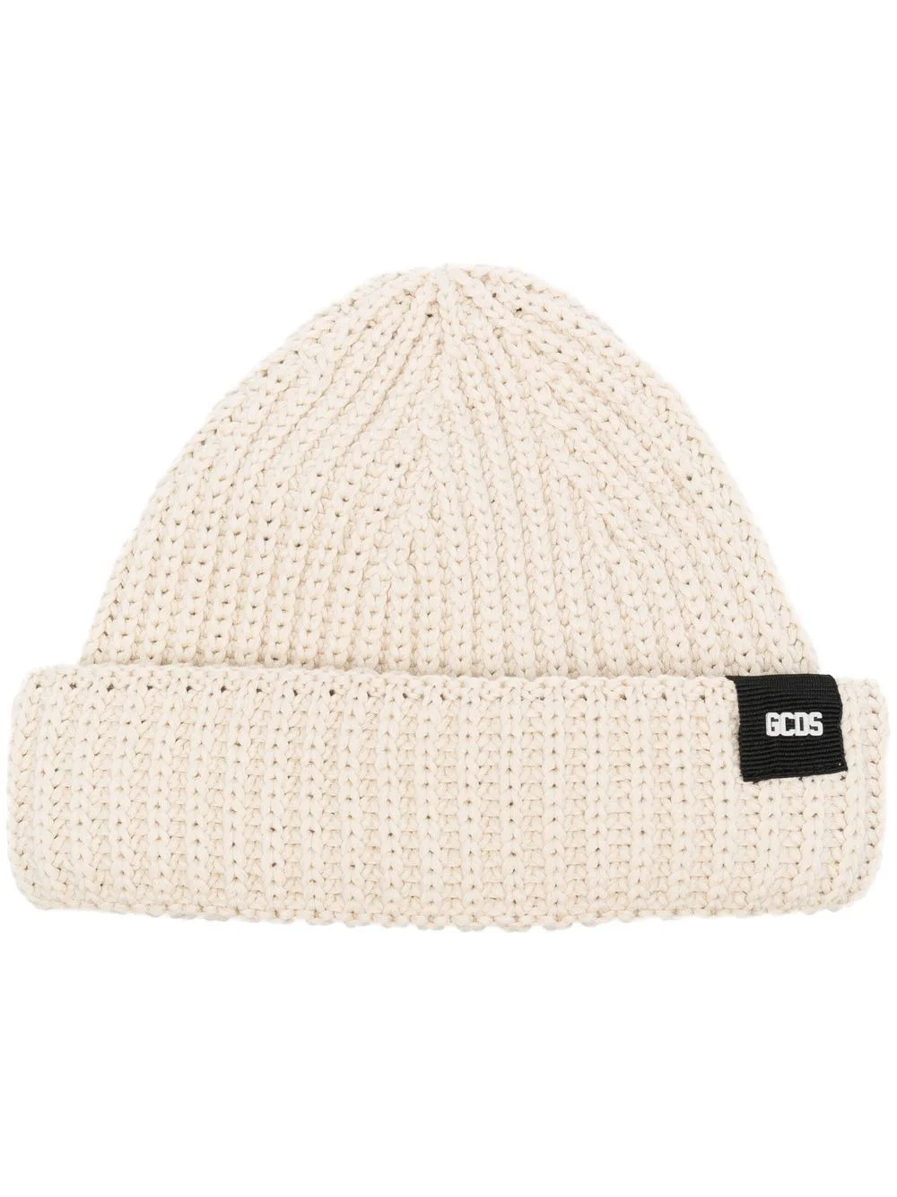 logo-patch ribbed knit beanie chalk white cotton blend ribbed knit logo patch to the side slip-on style Made in Italy Composition Cotton 74%, Polyamide 26% Washing instructions Hand Wash