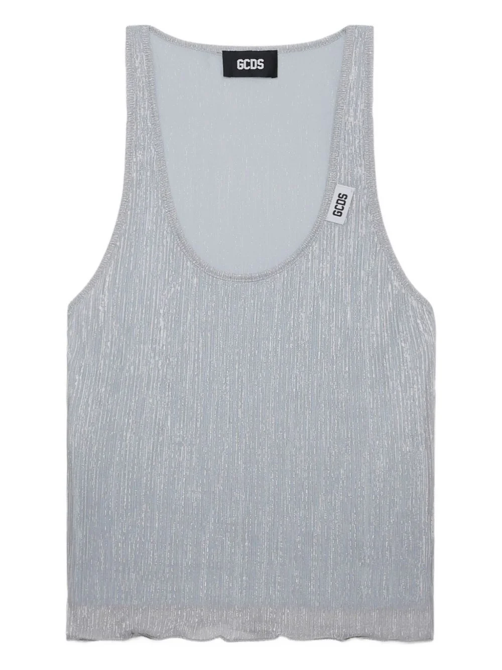 Rouches tank top Highlights - Silver-tone - Mini logo tag - Scoop neck - Sleeveless - Lurex detailing Imported Composition Polyester 50%, Metal 50% Washing instructions Read Manufacturer Guidelines