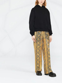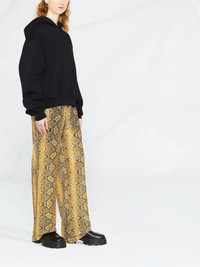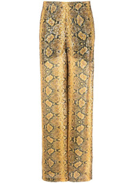 sequin-embellished snakeskin-print trousers GCDS' bold character comes to play in these wide-leg trousers. Designed in a neutral snakeskin print, the all-over sequin embroidery adds a reflective element to the pair. Made in Italy Composition Outer: Polyester 97%, Spandex/Elastane 3% Lining: Polyamide 94%, Elastane 6% SIZE & FIT Model measurements Height 5 ft 10 in(1.78 m) Bust/Chest 31.49 in(80 cm) Hips 35.43 in(90 cm) Waist 24.4 in(62 cm) FittingInformation This piece fits true to size. We recommend you get your regular size Designed to be fitted at the waist and hips, loose over the leg Made with a mid-weight stretch fabric