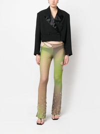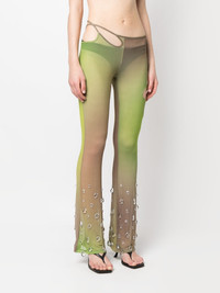 Sita crystal-drop tulle trousers Highlights - Khaki - Tulle netting - Sheer - Gradient effect - Crystal embellishment - Cut-out detailing - Mid-rise - Bootcut Made in Italy Composition Polyester 100% SIZE & FIT Model measurements Height 5 ft 11 in(1.8 m) Bust/Chest 31.49 in(80 cm) Hips 36.41 in(92.5 cm) Waist 25.59 in(65 cm) FittingInformation Designed with a flared hem, these trousers allow for a close fit at the waist with a slim fit over the leg and widening towards the hem Made from a midweight non-stretch fabric, this piece offers minimal elasticity when worn This piece fits true to size – take your usual size Washing instructions Hand Wash