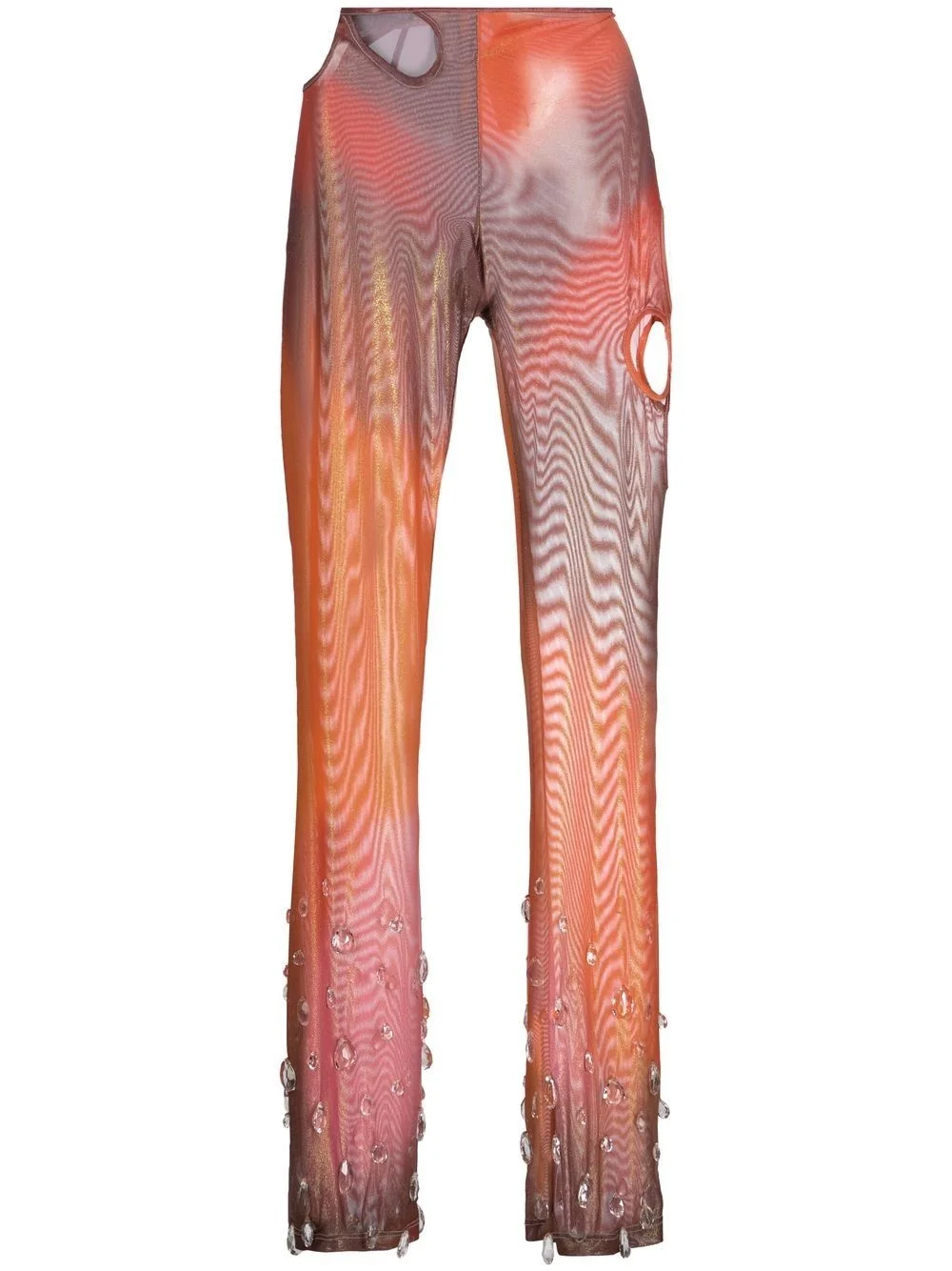 Sita Drops flared trousers GCDS is known for its loud, eye-catching designs. A prime example of that daring aesthetic, these trousers are decorated with a degrade effect and enriched with crystal drops applied by hand. Made in Italy Composition Polyester 100% SIZE & FIT Model measurements Height 5 ft 10 in(1.77 m) Bust/Chest 32.28 in(82 cm) Hips 35.03 in(89 cm) Waist 25.19 in(64 cm) FittingInformation This piece fits true to size. We recommend you get your regular size Designed to be fitted at the waist and through the thigh, loose from the knee Made with a mid-weight fabric