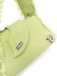 small Comma denim bag Crafted from an overdyed, bleached denim in a playful lime-green hue, GCDS's 'Comma' bag reveals the brand's attention to detail with its asymmetric flap and raw-cut edge. Silver-tone logo plaques and logo-print lining complete the look for a branded touch. Highlights - Lime green - Cotton - Denim - Distressed effect - Detachable leather shoulder strap - Single flat top handle - Logo plaque - Raw-cut edge - Asymmetric curved flap - Magnetic fastening - Internal card slot - Main compartment - Logo-print lining - Metal feet - Silver-tone hardware Made in Italy Composition Outer: Cotton 100%, Calf Leather 100% Lining: Viscose 100% SIZE & FIT Model measurements Height 5 ft 10 in(1.79 m) Bust/Chest 31.1 in(79 cm) Hips 35.03 in(89 cm) Waist 24.01 in(61 cm) Measurement DEPTH 3.93 in(10 cm) HANDLE 6.69 in(17 cm) HEIGHT 5.51 in(14 cm) STRAP 18.5 in(47 cm) WIDTH 9.05 in(23 cm)