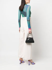 small Comma logo-lettering tote bag from GCDS featuring black, calf leather, silver-tone logo lettering, internal logo stamp, magnetic fastening, adjustable detachable shoulder strap, single top handle, internal card slot, main compartment, logo-print lining and metal feet. Size & Fit Model Measurements: Bust: 80cm Height: 178cm Hips: 92cm Waist: 65cm DEPTH: 9cm HANDLE: 13cm HEIGHT: 13cm STRAP: 49cm WIDTH: 22cm Fabric and Care Designer Style ID: SS23U500309 Designer Colour: 02 BLACK Composition: Outer: Calf leather 100%, Viscose 100%; Lining: Calf leather 100%Made in Italy