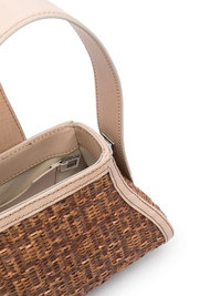 small Comma woven-raffia bag Highlights - Brown - Calf leather/raffia - Woven raffia design - Leather panel corners - Silver-tone logo plaque to the front - Logo-engraved silver-tone hardware - Debossed internal logo - Metal feet - Magnetic fastening - Single flat top handle - Adjustable detachable shoulder strap - Main compartment - Internal card slot - Logo-jacquard lining - This piece comes complete with a protective dust bag. Made in Italy Composition Outer: Calf Leather 100%, Raffia 100% SIZE & FIT Model measurements Height 5 ft 11 in(1.8 m) Bust/Chest 31.49 in(80 cm) Hips 36.61 in(93 cm) Waist 24.4 in(62 cm) Measurement DEPTH 4.13 in(10.5 cm) HANDLE 5.51 in(14 cm) HEIGHT 8.66 in(22 cm) STRAP 47.24 in(120 cm)