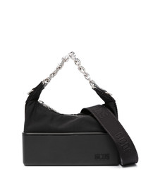 small Matilda logo-plaque bag Highlights - Black - Single chain-link top handle - Silver-tone logo plaque - Embossed logo to the front - Embossed logo to the side - Logo shoulder strap - Top zip fastening - Main compartment - Internal logo patch Made in Italy Composition Outer: Rubber 100%, Nylon 100% SIZE & FIT Model measurements Height 5 ft 11 in(1.8 m) Bust/Chest 31.49 in(80 cm) Hips 36.22 in(92 cm) Waist 25.59 in(65 cm) Measurement DEPTH 2.16 in(5.5 cm) HANDLE 2.36 in(6 cm) HEIGHT 3.93 in(10 cm) STRAP 23.62 in(60 cm) WIDTH 6.69 in(17 cm)