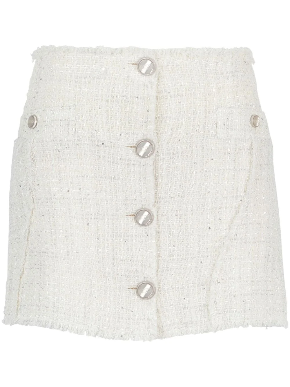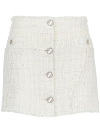 tweed mini skirt Highlights - Off-white - Cotton blend - Tweed - Frayed edge - Front button fastening - Two side welt pockets - Straight hem Made in Italy Composition Outer: Cotton 62%, Polyester 28%, Other fibres 10% Lining: Viscose 100%