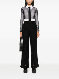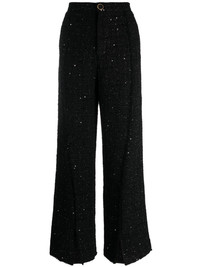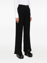 tweed tailored trousers Highlights - Black - Tweed - Sequin detailing - Tailored design - High-waisted - Front button and zip fastening - Flared - Front slit - Two side inset pockets - Two rear welt pockets Made in Italy Composition Cotton 44%, Polyester 30%, Acrylic 16%, Polyamide 10% SIZE & FIT Model measurements Height 5 ft 10 in(1.78 m) Bust/Chest 33.07 in(84 cm) Hips 35.82 in(91 cm) Waist 25.98 in(66 cm) FittingInformation Designed with a flared hem, these trousers allow for a close fit at the waist with a slim fit over the leg and widening towards the hem Made from a midweight non-stretch fabric This piece fits true to size – take your usual size Washing instructions Dry Clean Only