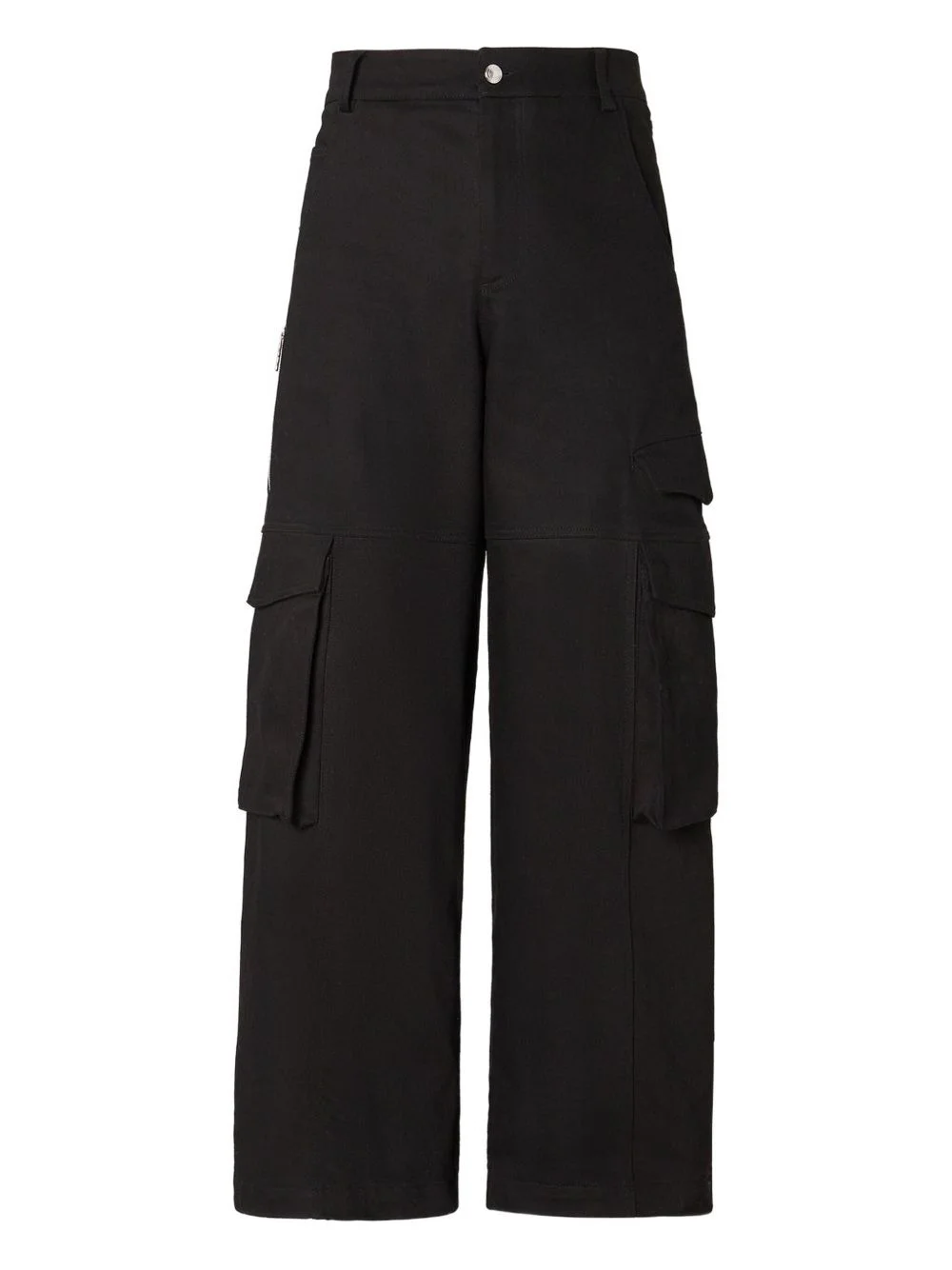 Ultracargo trousers Highlights - Black - Cotton - Gabardine weave - Silver-tone logo plaque - Logo patch to the rear - Mid-rise - Belt loops - Concealed fly and button fastening - Two side inset pockets - Side patch pocket - Three side cargo pockets - Side zip-fastening pocket - Two rear flap pockets - Wide leg - When buying this unisex item, keep in mind that it is graded in standard men's sizing. Made in Italy Composition Cotton 100% SIZE & FIT FittingInformation This piece is unisex and is designed with a wide-leg, whether you usually select women's or men's sizes Sturdy and hard-wearing, this denim piece offers no stretch