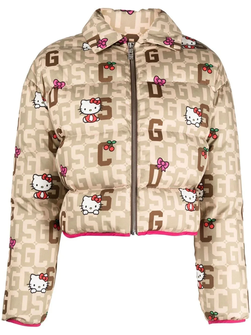 x Hello Kitty padded jacket beige feather down all-over logo print padded design classic collar front zip fastening long sleeves Made in Italy Composition Outer: Polyester 100% Lining: Polyester 100%, Duck Feathers 80%, Feather 20% SIZE & FIT Model measurements Height 5 ft 10 in(1.78 m) Bust/Chest 33.07 in(84 cm) Hips 36.61 in(93 cm) Waist 24.8 in(63 cm) Washing instructions Machine Wash